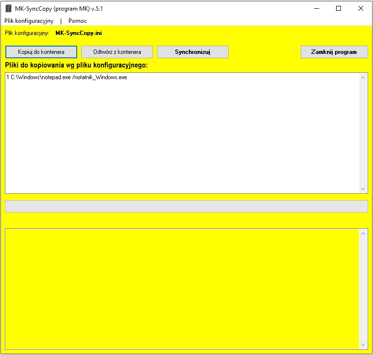- pliki do kopiowania należy pre-konfigurować w pliku tekstowym " MK-SyncCopy.ini"