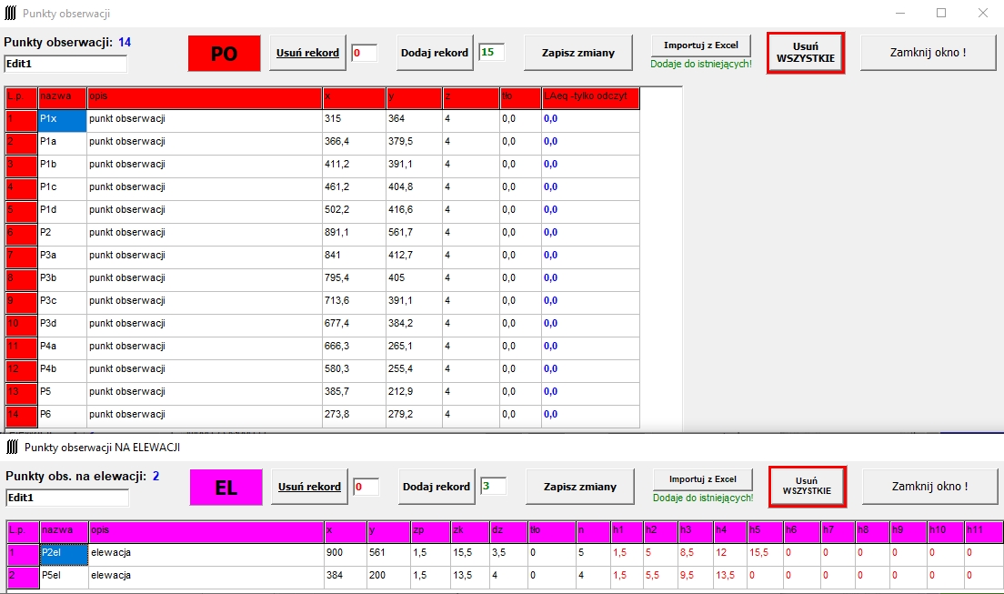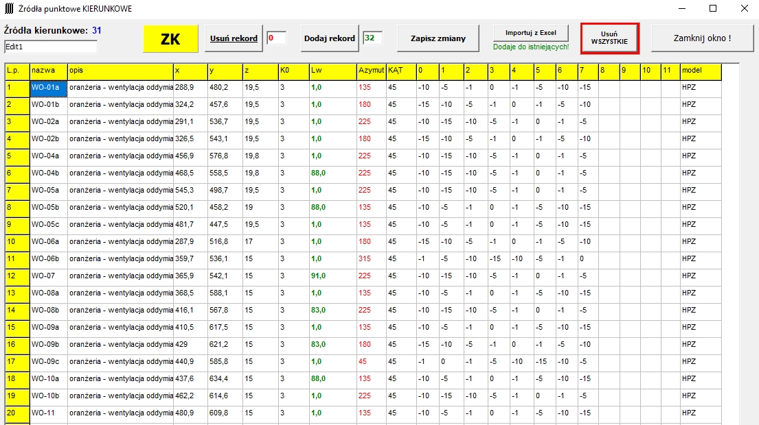 (obecnie: źródła punktowe, źródła kierunkowe, źródła liniowe, źródła- budynki, ekrany, punkty obserwacji, punkty obserwacji na elewacjach)