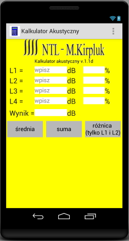 Najnowsza wersja z 27.03.2020 r.! Kalkulator akustyczny v.3.3 na smartfony z Androidem (Android 7.0 i wyższe)